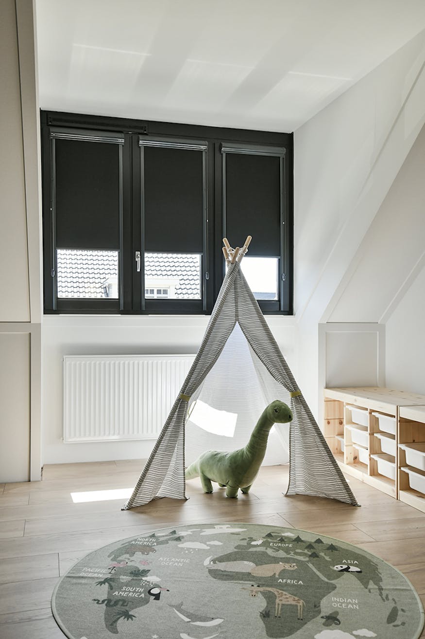 “De kamers van de kinderen zijn voorzien van rolgordijnen in een mini-cassette met zijgeleiding. Ideaal, want ze verduisteren de kamers goed waardoor de kids goed kunnen slapen.”