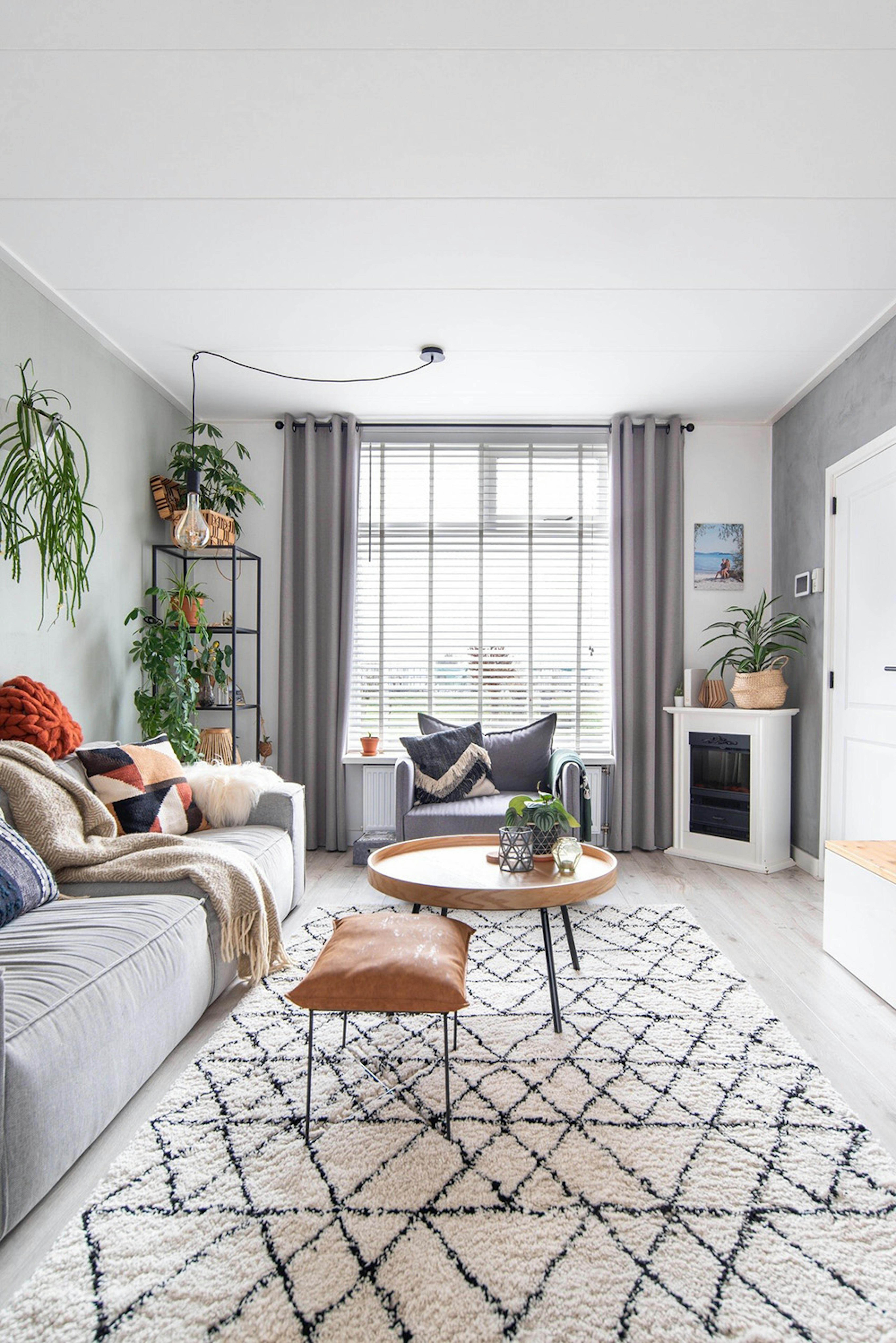 Interieurblogger Kelly heeft een eensgezinswoning waarvan je kunt dromen. Perfect gestyled en voorzien van de leukste accessoires. inhuis plaza leverde Bohemian gordijnen voor haar woonkamer met zwarte inslagringen, want die waren volgens Kelly nodig aan vervanging toe.