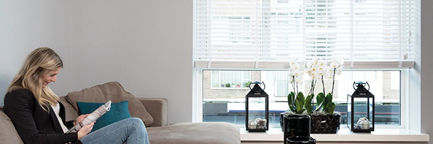 Midden in het centrum van Rotterdam wonen, tussen de gloednieuwe Markthal en de hippe Pannekoekstraat, dat is voor veel starters een droom. Benny en Michelle hebben hun trendy appartement in de stad onlangs flink opgeknapt en daar hoorde ook nieuwe raamdecoratie op maat bij. Ze kozen voor de witte houten jaloezieën van inhuis plaza.