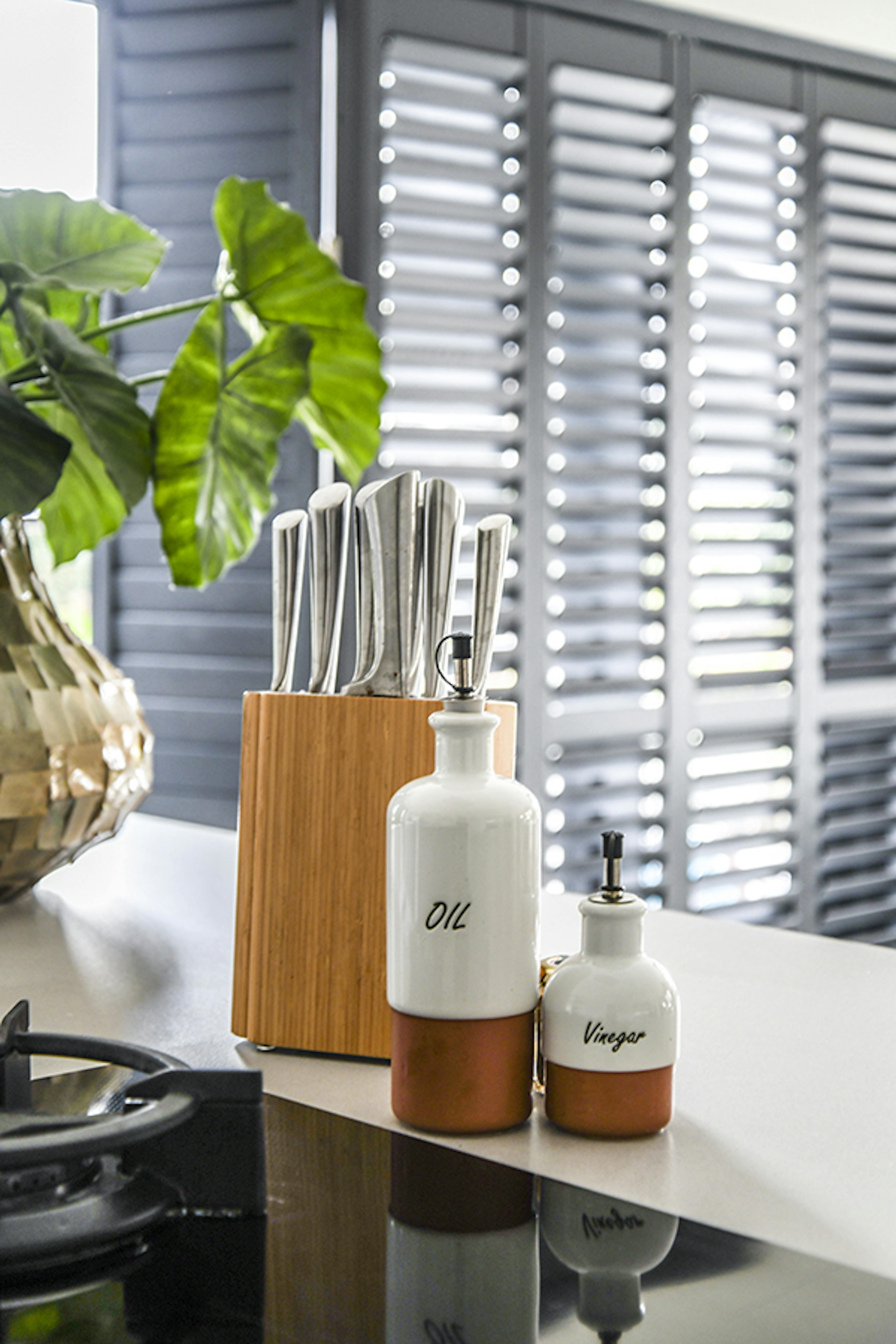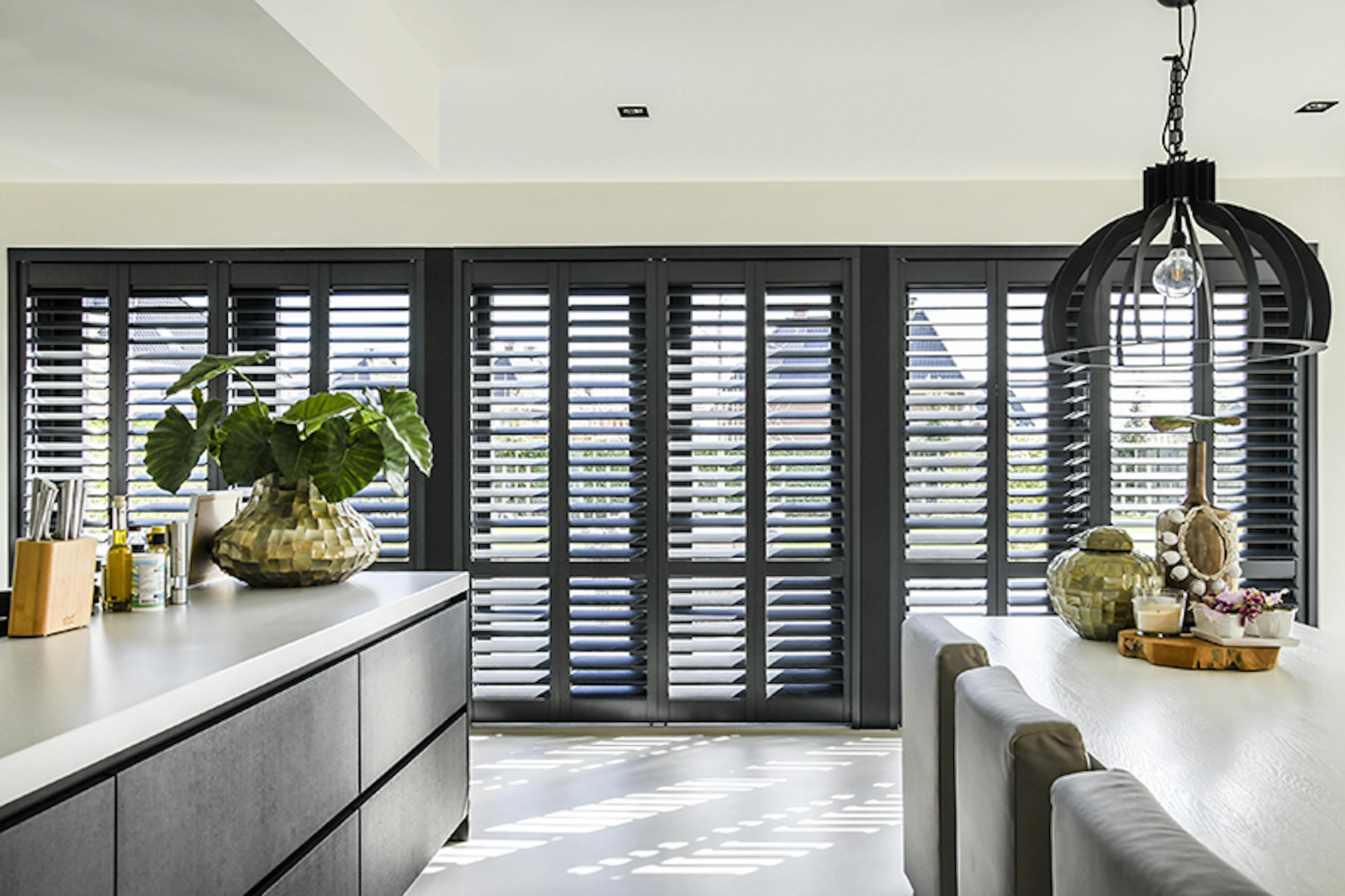 Interieuradviseuse Carola Bakker woont samen met haar man en twee dochters in hun zelfgebouwde woning. Perfect gestyled en voorzien van de nieuwste interieurtrends. inhuis plaza leverde shutters voor de keuken tegen inkijk en de zon.