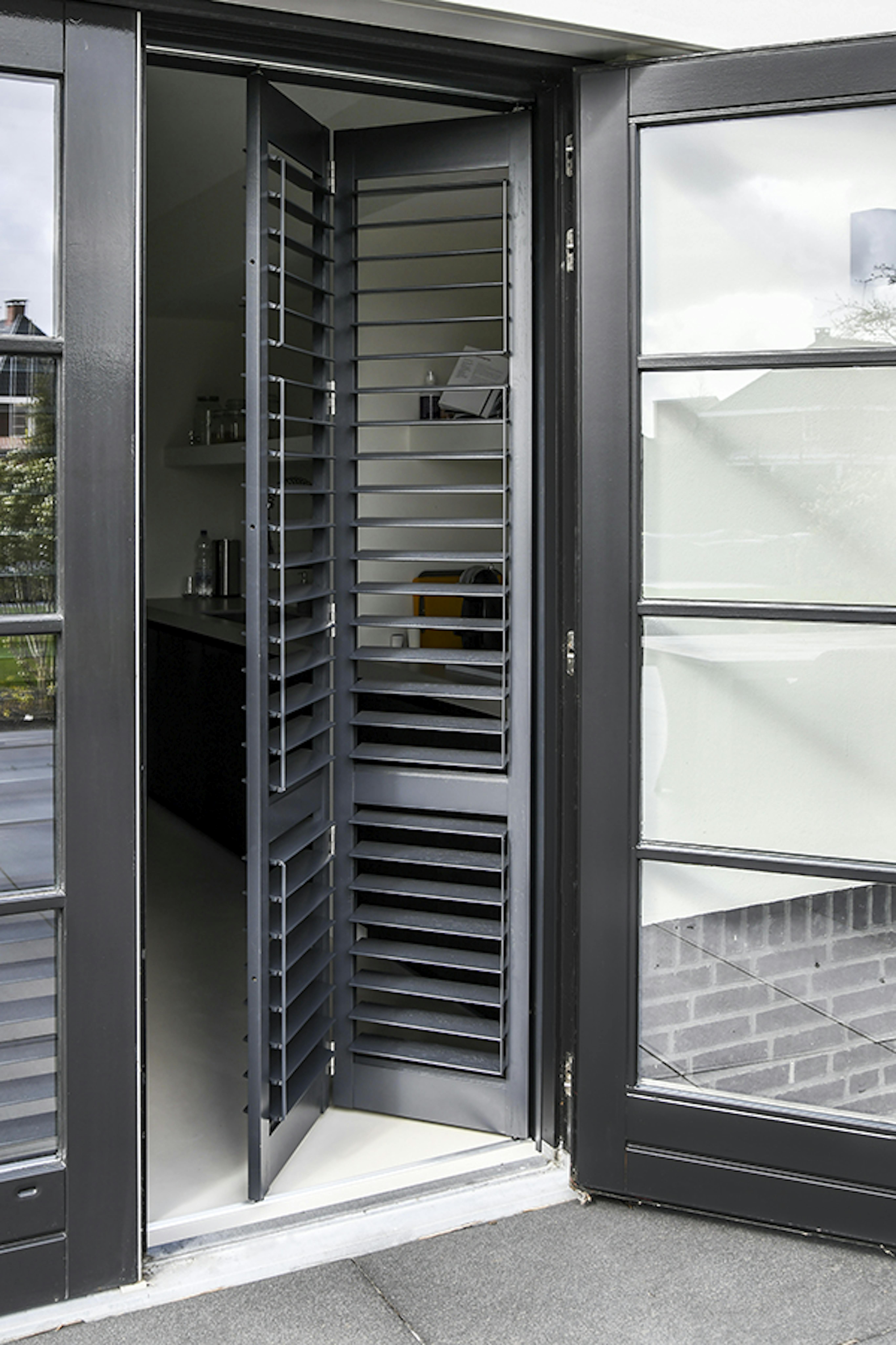 “De shutters vallen nu mooi tussen de pilaren in, waardoor het goed bij de pui past en het erin wegvalt”
