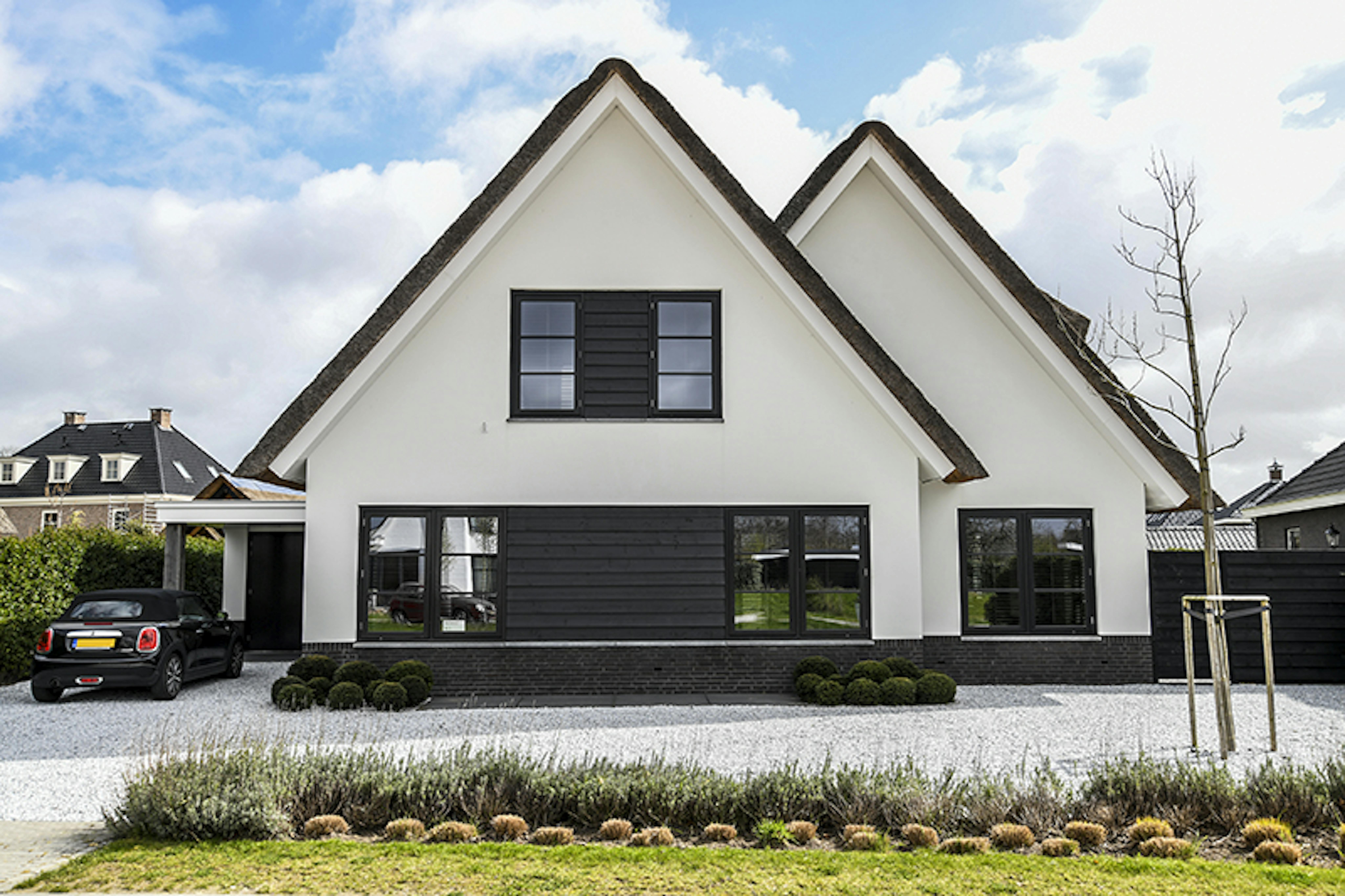 In mei woont de familie Bakker hier 3 jaar. De voormalige boerderij met landbouwgrond heeft plaats gemaakt voor een prachtige zelfgebouwde droomwoning. “Mijn man droomde al jaren van het bouwen van een eigen huis en toen kwam dit op ons pad. Een kavel in een woonwijk, dat zie je niet vaak. Samen met mijn man en een architect hebben we alles zelf ontworpen en bedacht. De inrichting en styling heb ik wel zelf gedaan. Ondanks dat ik werkzaam ben als interieuradviseuse, is het stylen van je eigen woning veel lastiger. Bij een klant is het veel gemakkelijker om te zeggen: “je moet echt voor dit gaan.”