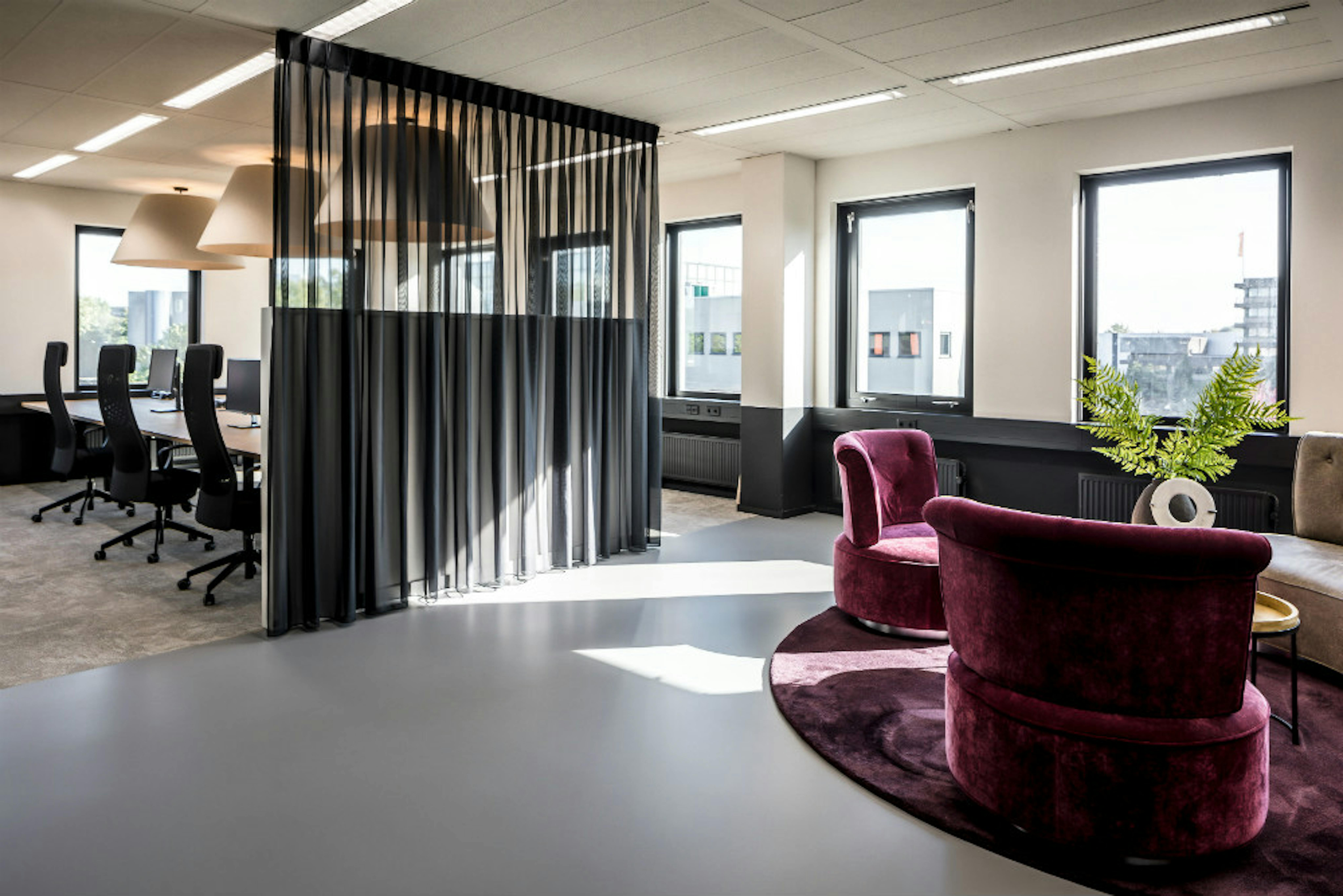 inhuis plaza kreeg de opdracht de juiste raambekleding te selecteren met de eigenschappen transparant, zwart en vlamvertragend. Annemiek ging aan de slag naar aanleiding van de interieurtekeningen en de keuze werd gemaakt voor de gordijnstof Voile van Vadain. Bekijk het prachtige resultaat!