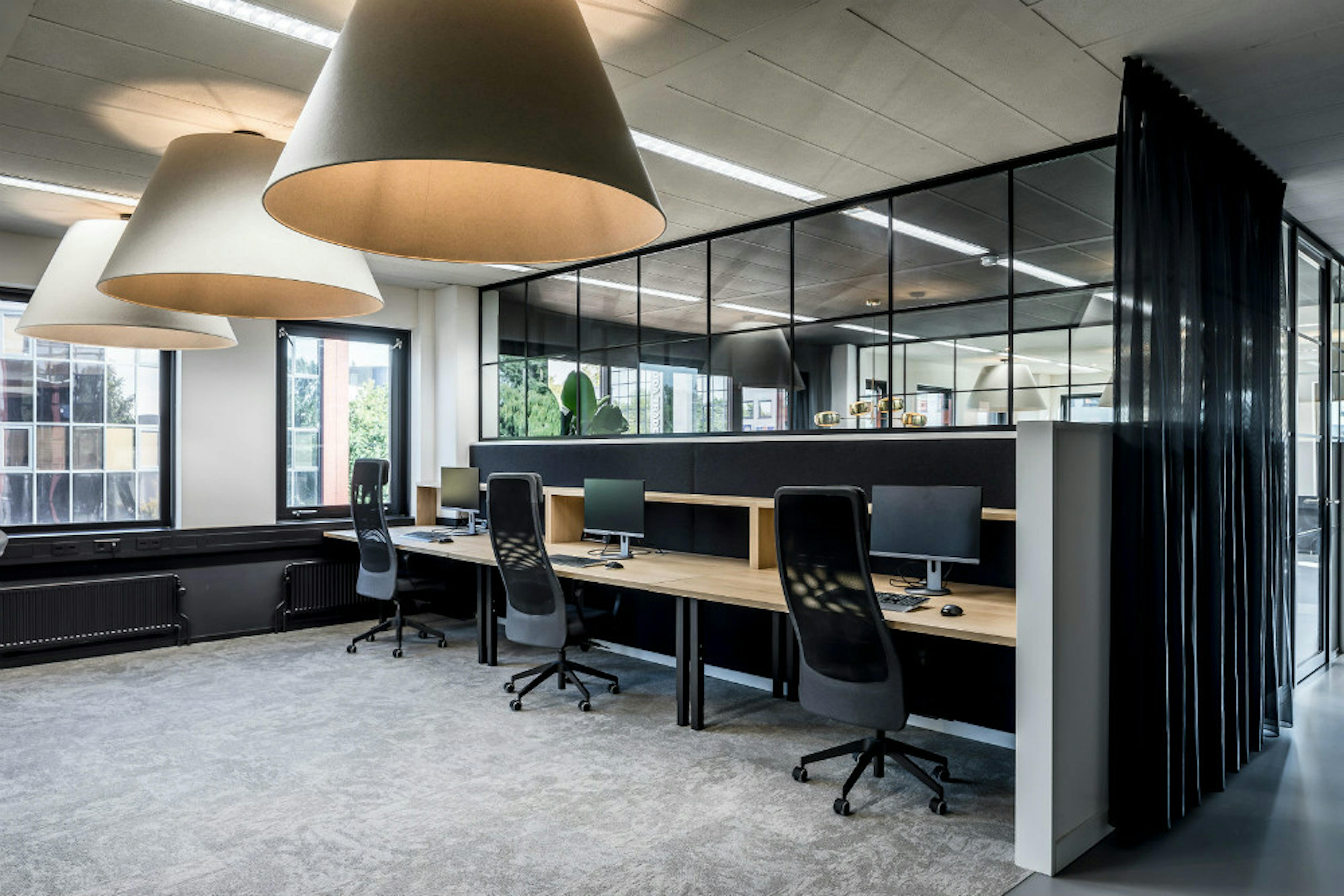 Dekbed Discounter groeide uit haar jasje en verhuisde daarom naar een nieuw kantoorpand in Gouda. Daisy van de Heuvel bedacht de indeling en styling van de ruimtes en inhuis plaza leverde 55 gordijnen voor het pand.