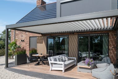 Je denkt misschien dat een overkapping alleen afgesloten kan worden door glazen wanden, maar niets is minder waar. Door de zijkanten van je overkapping te voorzien van windvaste screens, zorg je voor een complete afdichting van je terras. In de zomer blokkeren ze de felle zonnestralen en houden ze de warmte buiten, zodat je altijd een koele en schaduwrijke plek hebt om te ontspannen. In de winter helpen screens om de kou buiten te houden en de warmte binnen te behouden, zodat je overkapping zelfs op koude dagen comfortabel blijft. Bovendien zijn screens wind- en regenbestendig, waardoor je het hele jaar door kunt genieten van een aangename buitenruimte.