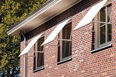 Uitvalschermen zijn zonneschermen met twee vaste armen in plaats van knikarmen. Ze zijn dan ook bijzonder stevig en kunnen zowel wind als storm trotseren. Je bepaalt bij het samenstellen van een uitvalscherm zelf de breedte en de uitval. Uitvalschermen zorgen voor schaduw, maar belemmeren het zicht naar buiten niet. Een ideale combinatie! Uitvalschermen worden vaak toegepast voor ramen op bijvoorbeeld een eerste of tweede verdieping of een balkon.