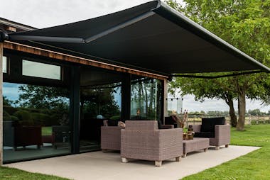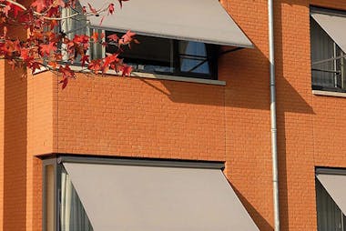 Alle uitvalschermen bij inhuis plaza worden standaard elektrisch geleverd met een goede Somfy motor voor het optimale bedieningsgemak.