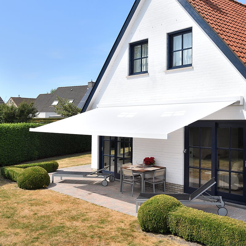 Hoe gaaf is het als je zonnescherm matcht met je woning en terras! Daarmee wordt het hele plaatje één geheel. Denk alvast na over de kleur die je graag voor het zonnescherm wenst als je naar de winkel komt. Er zijn heel veel verschillende doekkleuren en dat helpt je alvast om een selectie van de doekkleuren te maken. Naast de doekkleur, is het ook mogelijk om de cassette te matchen met de kleur van je kozijnen.
