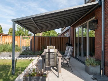 Wil je juist van de zon genieten? Dan rol je het doek moeiteloos open voor een open terrasgevoel. Onze aluminium pergola’s zijn bovendien duurzaam, onderhoudsarm en bestand tegen alle weersinvloeden, van felle zon tot regen en wind. En niet onbelangrijk: het doek biedt ook bescherming tegen schadelijke UV-stralen. Zo geniet je het hele jaar door zorgeloos van jouw terras.